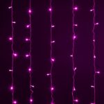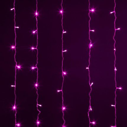 Гирлянда «Занавес» 3×2 м в розовом свечении с мерцающим эффектом создаёт яркий акцент в интерьере и праздничное настроение. Подходит для украшения стен, окон и фотозон в помещении.