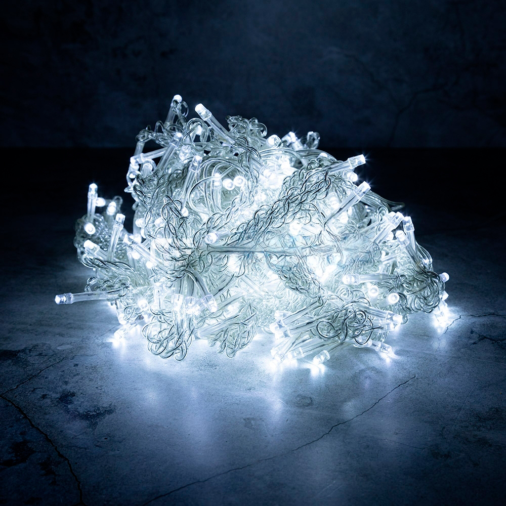 Гирлянда «Занавес» 3×3 м превращает любую поверхность в сияющее полотно света. Белые огоньки расположены густо и равномерно, поэтому при включении создаётся впечатление живого светового дождя. Благодаря мерцанию часть диодов мягко мигает, что делает свечение динамичным, но не раздражающим глаз.