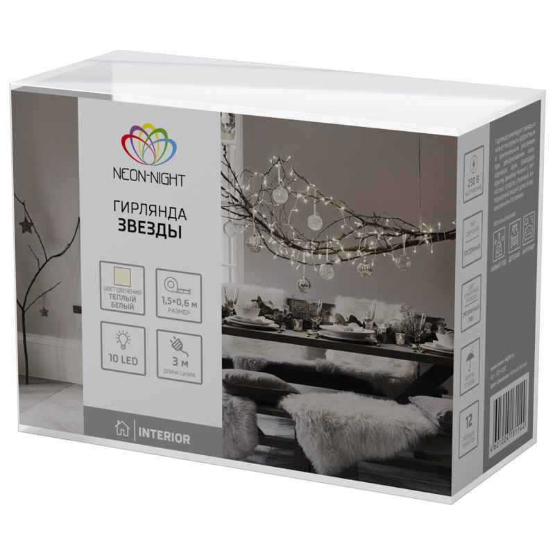 Купить Гирлянда Звезды 1.5х0.6 м, Тепло-Белый с постоянным свечением, 10 LED, Провод Прозрачный ПВХ, IP20 в интернет-магазине компании Joyled в Москве.