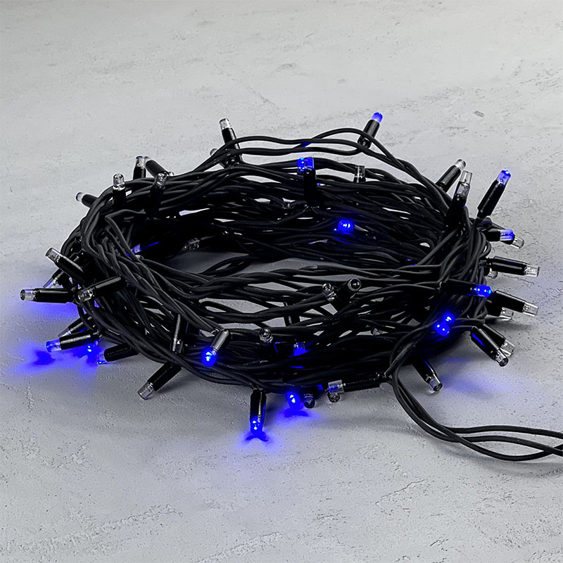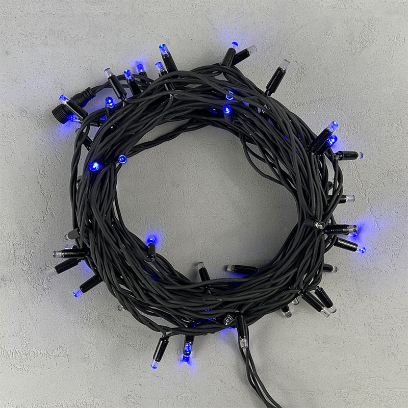 Профессиональная гирлянда длиной 10 метров с насыщенным синим свечением и эффектом мерцания каждого диода. Надёжный чёрный каучуковый провод, степень защиты IP65 и высокая морозоустойчивость делают её идеальной для уличной подсветки деревьев, заборов, колонн и перил в любую погоду.