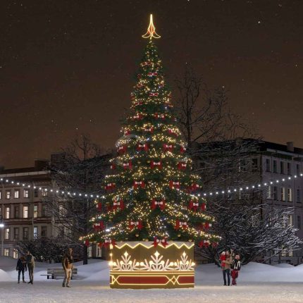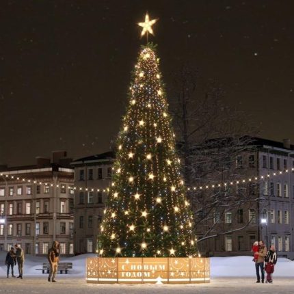JOYLED берёт на себя весь цикл работ: проектирование, доставку, сборку, декор и демонтаж. Монтажники работают аккуратно, не повреждая фасады и покрытия. После сезона ель демонтируется, упаковывается и готовится к следующему году.