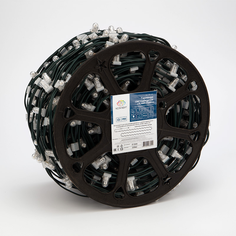 Профессиональная гирлянда Клип-Лайт с эффектом белого мерцания. 100 м, 665 LED, питание 12 В, степень защиты IP65, надёжный чёрный ПВХ-провод. Создаёт мягкий живой свет, который мерцает без раздражения. Отличный выбор для деревьев, фасадов, колонн, фотозон. Соединяется в цепь до 300 м. Подключение уже в комплекте. Работает даже в мороз до –25 °C.