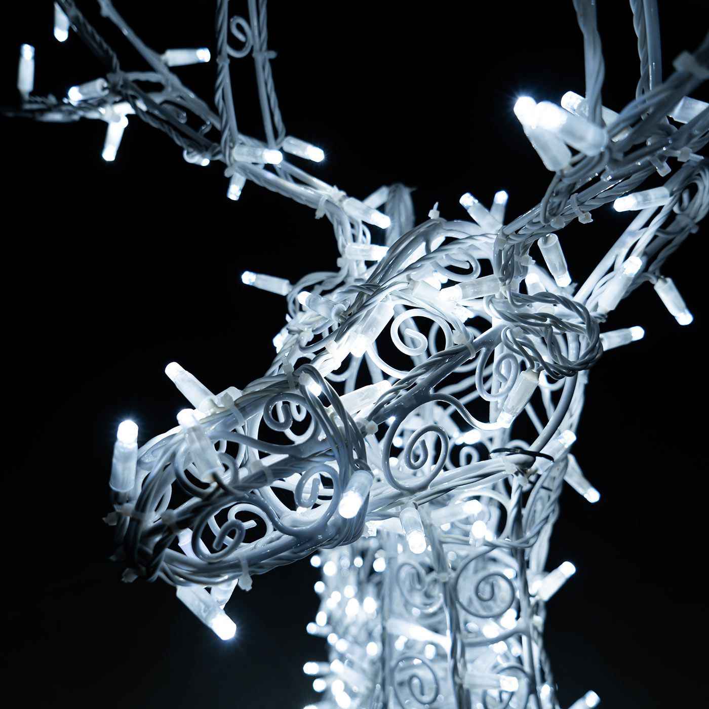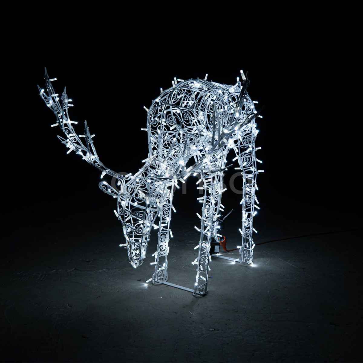 Все элементы выполнены из оцинкованной стали с порошковой покраской. Это придаёт конструкциям прочность, устойчивость к коррозии и эстетичный внешний вид. Используются светодиодные модули с холодным белым свечением, ресурс которых достигает 50 000 часов. Олень с динамикой снабжён подвижным элементом, имитирующим движение головы или тела — это придаёт инсталляции дополнительную живость.