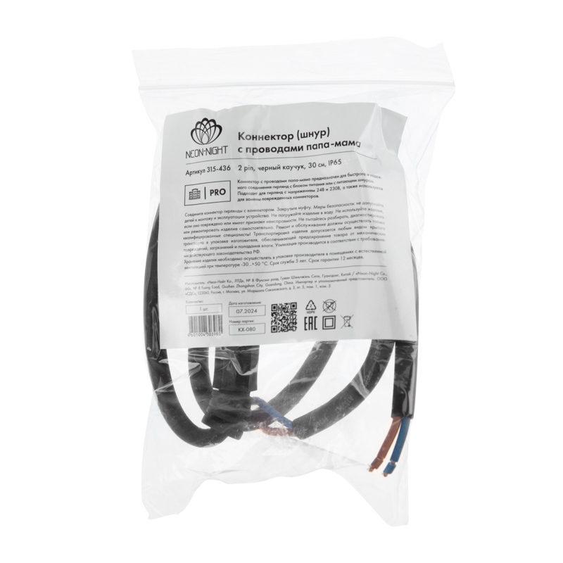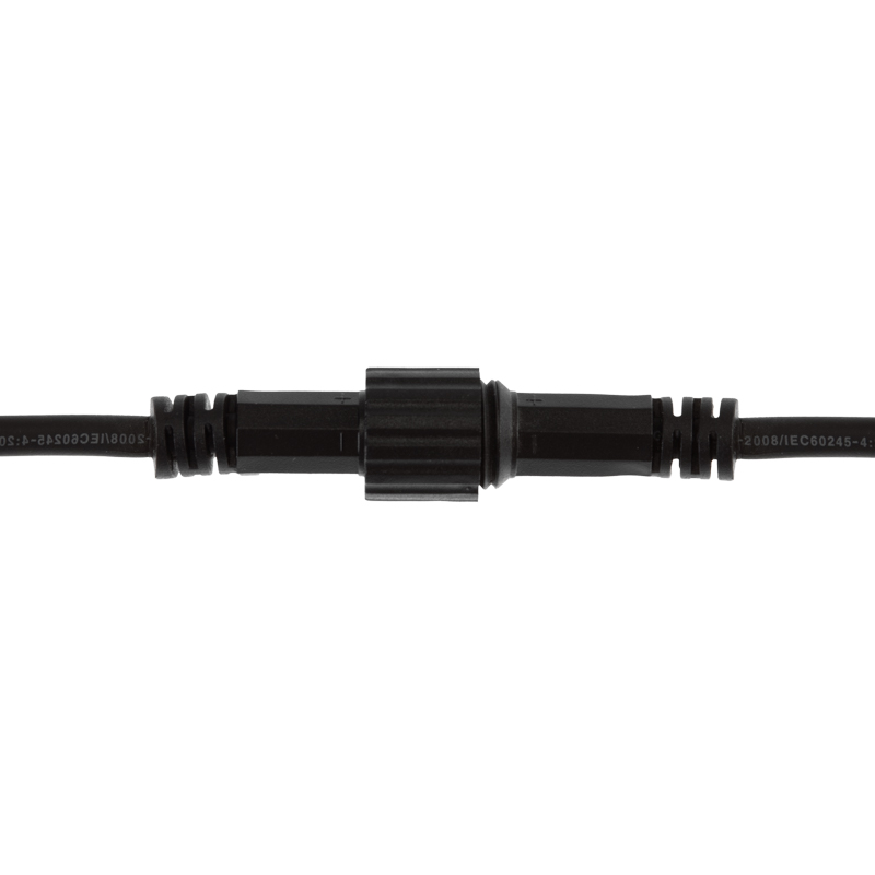 Коннектор 2 pin с проводами «папа–мама» используется для подключения гирлянд к блоку питания и создания надёжных соединений в уличных световых системах JOYLED. Каучуковый чёрный провод устойчив к морозам, влаге и механическим нагрузкам, поэтому подходит для профессиональных монтажей на фасадах, деревьях, перилах и архитектурных конструкциях.
