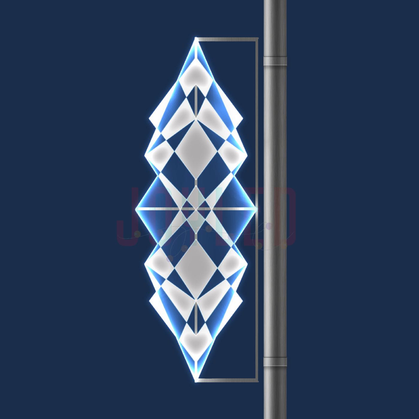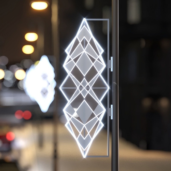 Световая консоль «Кристальная» — уличная фигура с каркасом из алюминия и рассеивателями из поликарбоната. Размер 0,63×1,71 м. Подходит для оформления опор освещения на улицах, в парках и у фасадов зданий. Холодный свет, защита IP65. Монтаж под ключ от JOYLED.