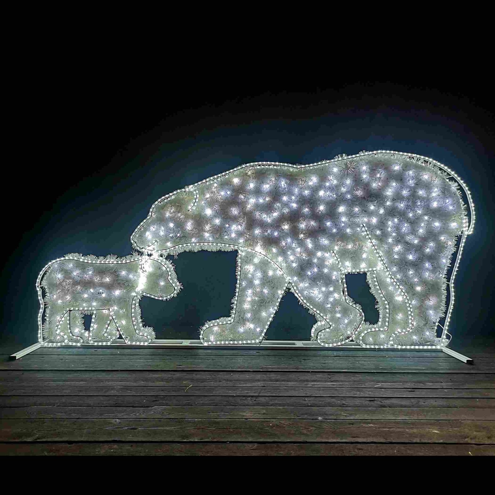 Трогательная композиция медведицы с малышом высотой до 2,7 метра для семейного праздничного оформления. Каркас из стали с антикоррозийным покрытием работает от -50°C до +40°C. LED-свечение любого цвета на выбор. Серия OPTIMA-PRO от JOYLED. Плоская конструкция 2D экономит место. Срок службы 50000 часов, гарантия 12 месяцев.