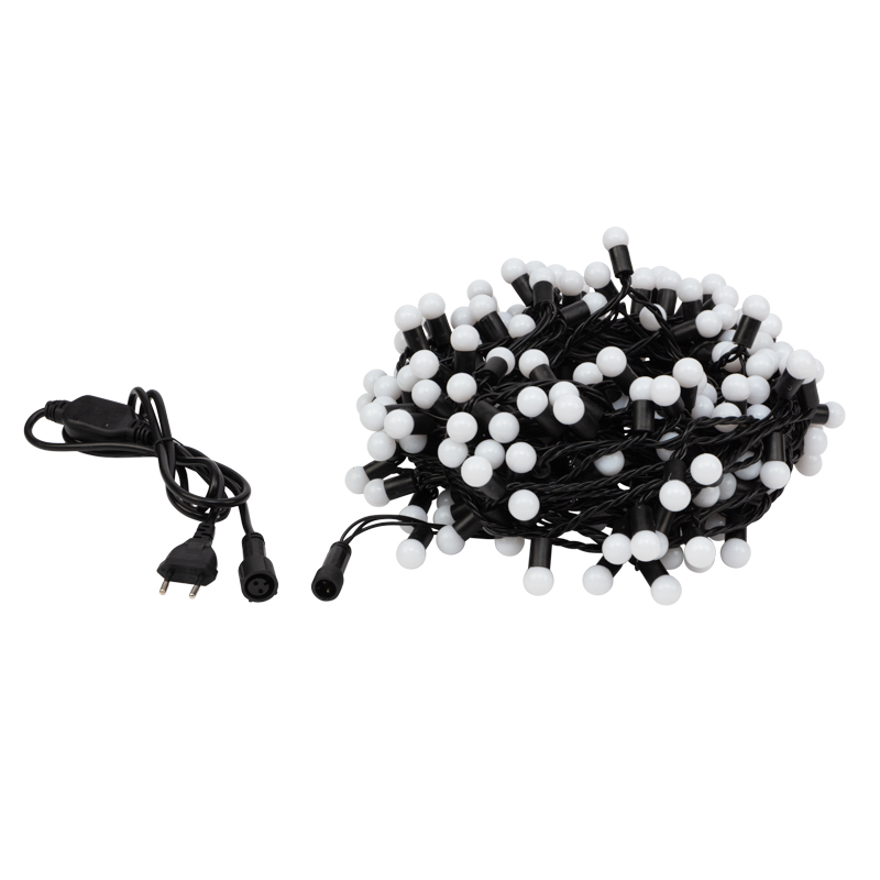 Гирлянда Мультишарики 20 м Белая Статика, 200 LED, Чёрный ПВХ, IP65, NN