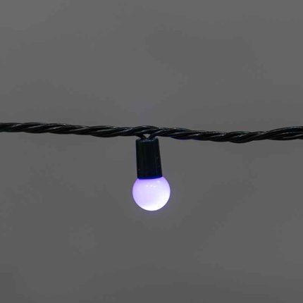 Гирлянда длиной 20 м с 200 мини-шариками RGB-свечения и 8 режимами динамики. Компактные диоды Ø15 мм, тёмно-зелёный ПВХ, IP44. Подходит для улицы: деревья, перила, заборы. Лёгкая, яркая, экономичная.