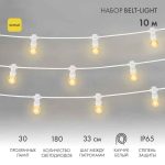 Профессиональный набор Белт-Лайт JOYLED длиной 10 м с 30 жёлтыми лампами E27 на белом каучуковом проводе — готовое решение для уличного освещения. Тёплое жёлтое свечение создаёт уют и атмосферу комфорта, подчёркивая архитектуру и декор. Полная пыле- и влагозащита IP65 позволяет использовать гирлянду на улице в любое время года.