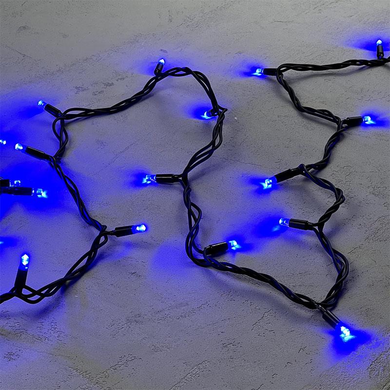 Гирлянда Нить 10 м Синяя Статика, 75 LED, Чёрный Каучук, 24 В, IP65, LTC