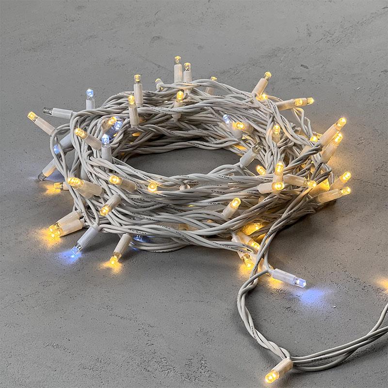 Гирлянда Нить 10 м Тепло-Белая с Мерцанием Белого Диода, 75 LED, Белый Каучук, 220 В, IP65, LTC