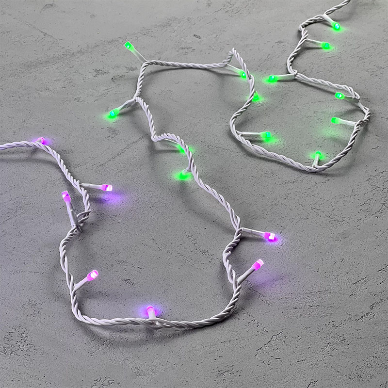 Гирлянда поддерживает статичное, мерцающее и динамическое RGB-свечение. Подходит для сезонного и постоянного декора.