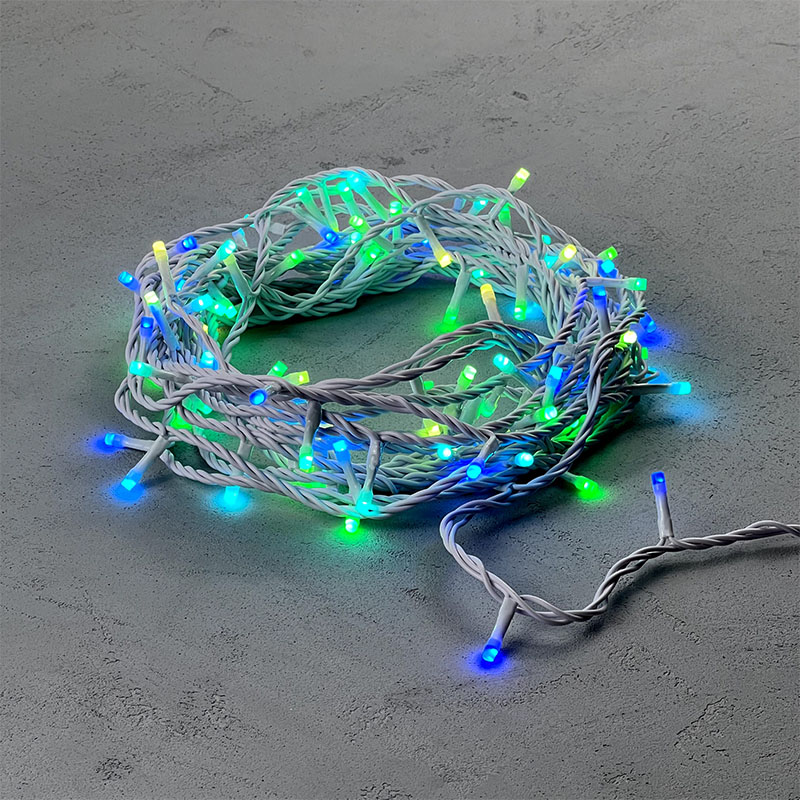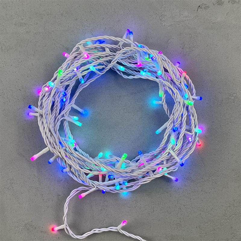 Гирлянда Нить 10 м Разноцветная контроллер, 100 LED, Белый Каучук, IP65, LTC