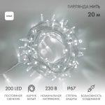 Гирлянда Нить 20 м Белая Статика, 200 LED, Белый Каучук, IP67, NN