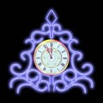 Фигура представляет собой плоские 2D-часы на металлическом каркасе, с точной прорисовкой циферблата и стрелок. Светодиодная подсветка смонтирована по периметру, в том числе по внутренним деталям. Цвет свечения — любой на выбор: от тёплого белого до насыщенных оттенков (синий, красный, мультиколор, золотой и другие).