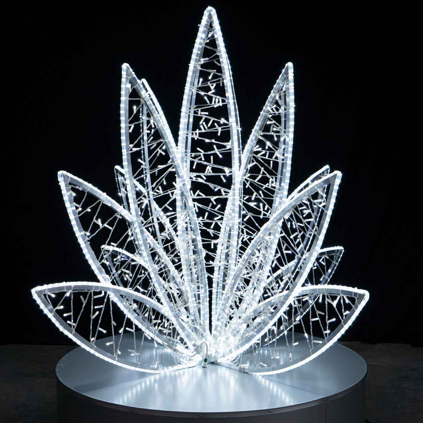 Яркие светящиеся фонтаны — это впечатляющие объемные конструкции, идеально подходящие для оформления городских пространств, входных зон, торговых объектов, парков и пешеходных аллей. Эти изделия изготавливаются из прочного и легкого алюминиевого каркаса, который не требует покраски.