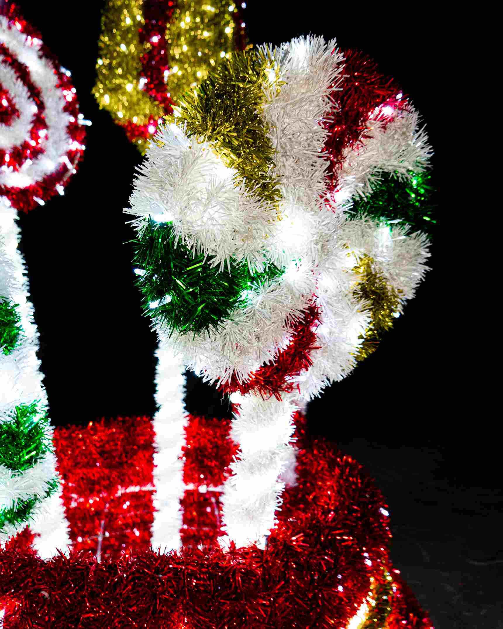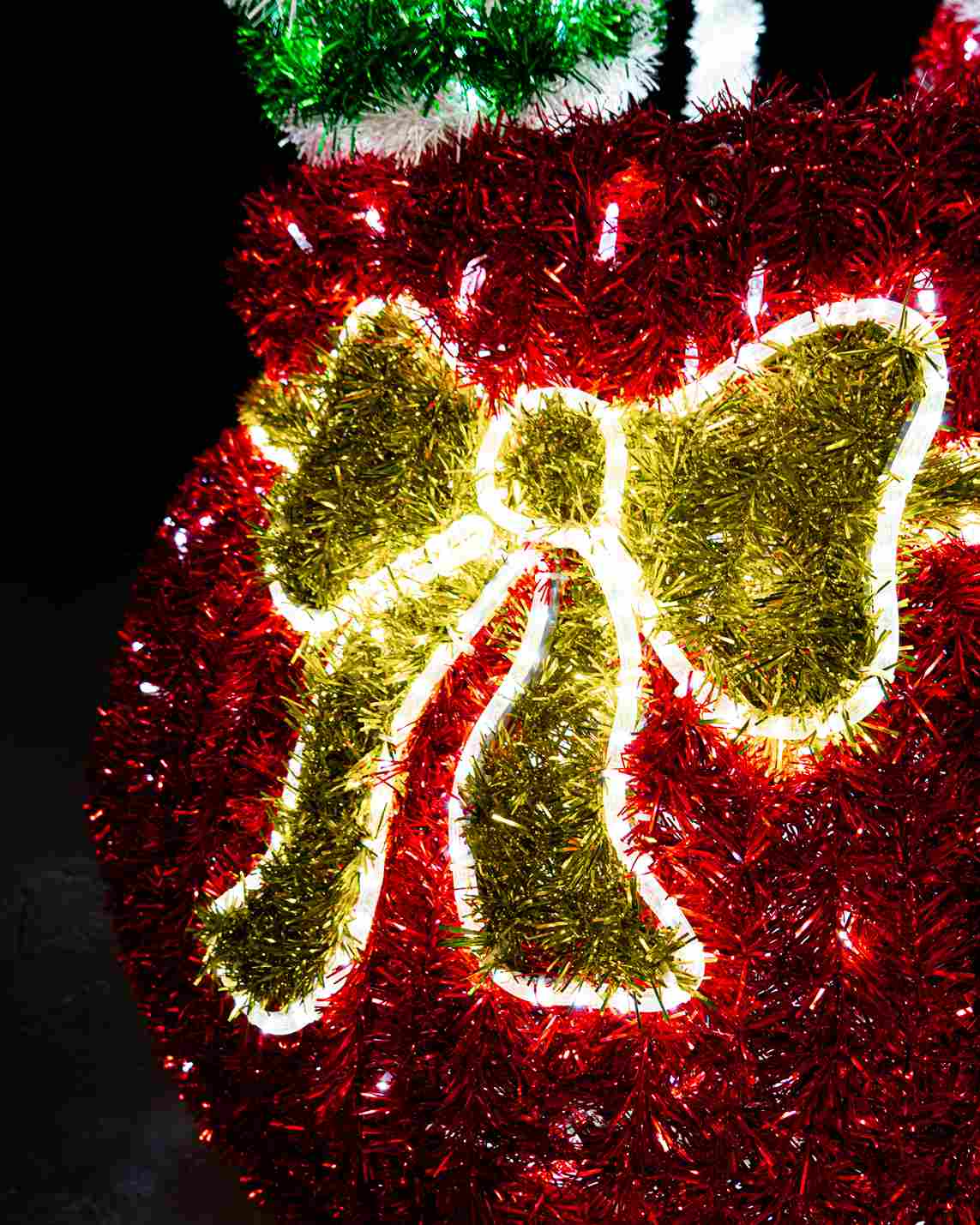 Фигура создана для долгосрочной эксплуатации на улице. Каркас выполнен из прочного металла с покраской, что обеспечивает устойчивость к ветру, влаге и низким температурам. Мишура надёжно закреплена, сохраняя декоративность даже при активной эксплуатации.