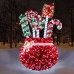Благодаря холодному белому свечению фигура красиво выделяется на фоне зимнего пейзажа и гармонирует с другими элементами праздничной иллюминации. «Сказочный мешок» одинаково эффектно смотрится днём и ночью: днём он радует насыщенной мишурой и узнаваемой формой, а вечером загорается ярким светом и становится центром фотозоны.