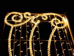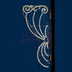 Форма «занавеса», подсвеченная мягким золотым светом, создаёт эффект торжественного входа и задаёт новогоднее настроение. Размер 1×2,4 м позволяет установить фигуру на опоры освещения без визуального перегруза. Консоль хорошо читается издалека, смотрится торжественно и стильно.