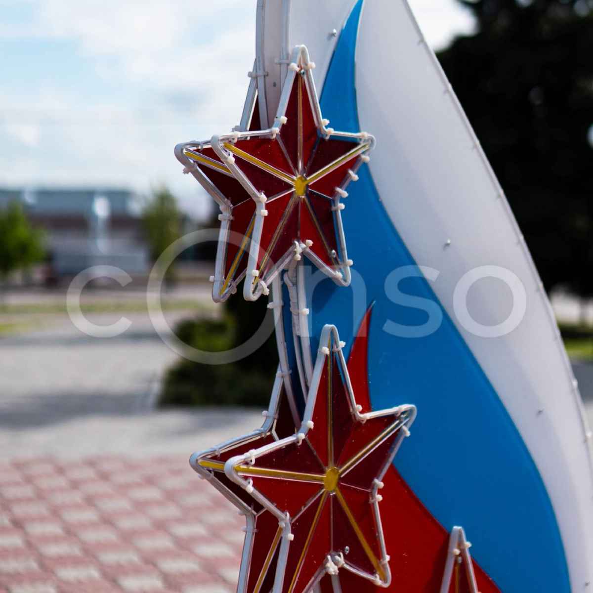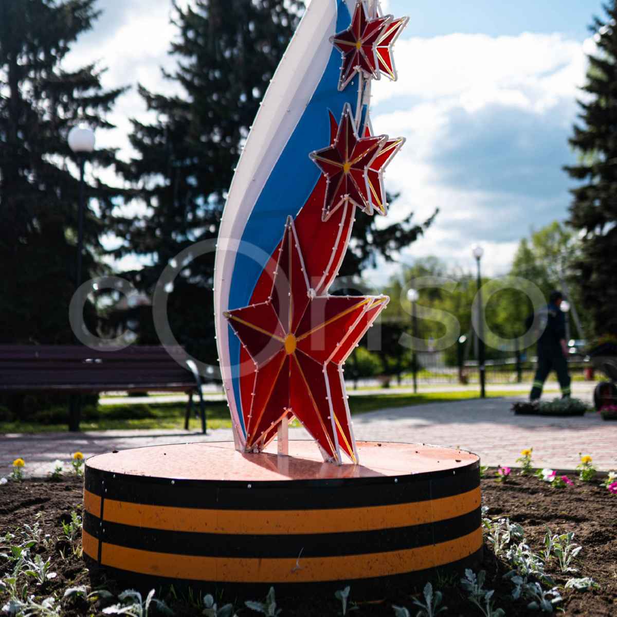 Объёмная композиция «ОПК 006» — эффектная 3D-фотозона из серии OPTIMA-PRO для улицы. Размер 1,2×2×1,2 м, холодное свечение, алюминиевый каркас, защита IP65. Светодиоды с ресурсом 50 000 часов. Идеально подходит для украшения городских площадей, ТЦ, БЦ и праздничных мероприятий, включая День Победы и День города.