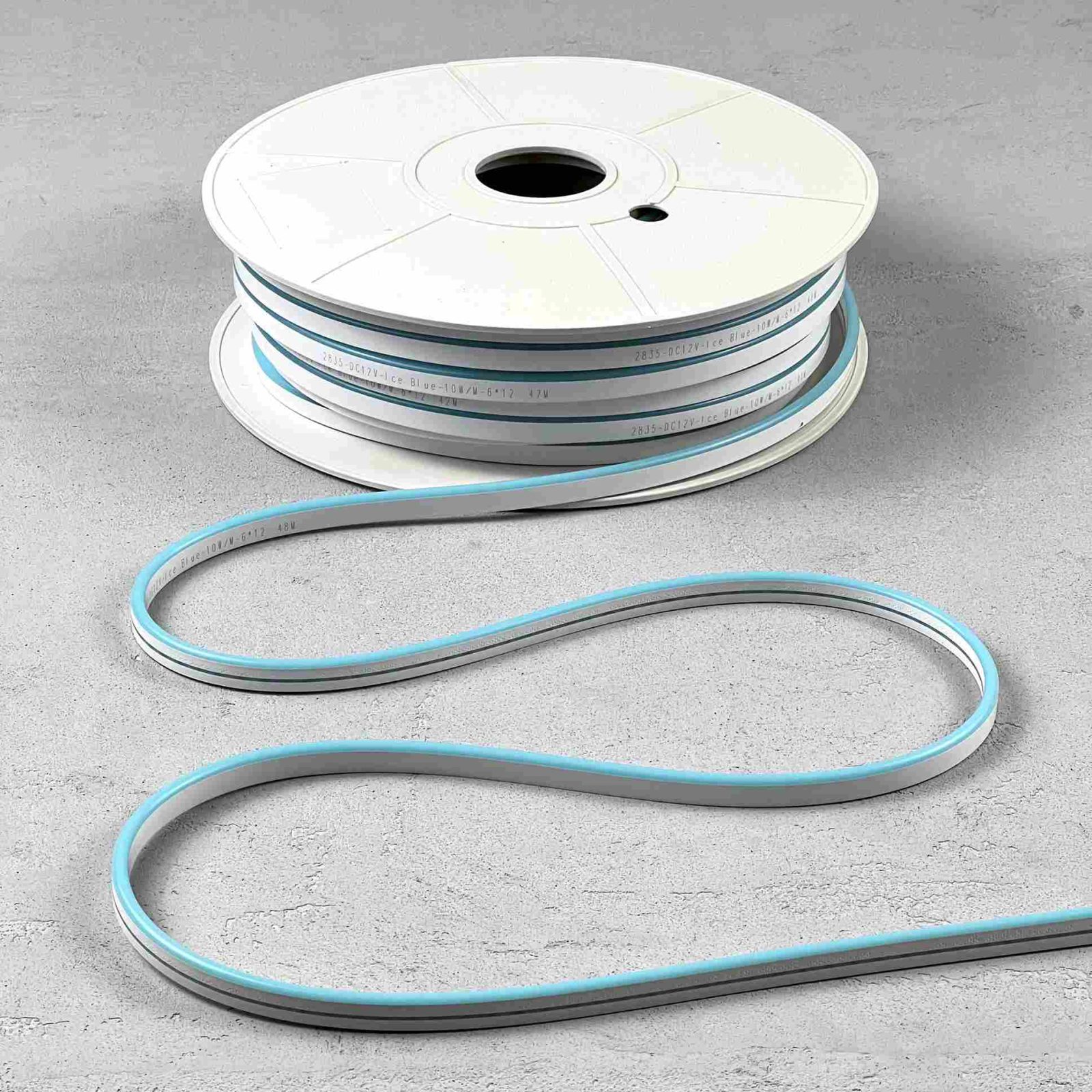 Односторонний гибкий неон 8×16 мм, 50 м, 12 В, 110 led, IP65, небесно-голубое свечение
