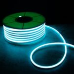 Поставляется в бухте длиной 50 метров, подключается напрямую к сети 220 В, не требует дополнительной сборки — сетевой провод уже в комплекте. Цвет свечения — насыщенный голубой. Класс пылевлагозащиты IP65 позволяет использовать неон на улице круглый год — от -40 до +60 °C.