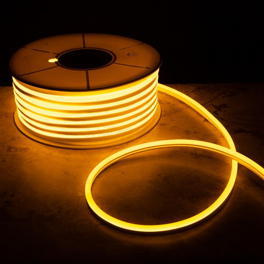 Гибкий неон односторонний 8×16 мм, 50 м, IP65, 220 В, жёлтое свечение, с сетевым проводом