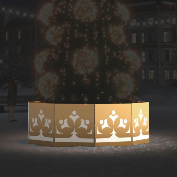 Ограждение для ёлки «Золотой рисунок» от JOYLED — это стильный акцент вокруг главного символа праздника. Оно защищает основание инсталляции и одновременно придаёт ей парадный вид. Благородный золотой цвет создаёт ощущение тепла и торжественности, а ажурный орнамент повторяет мотивы снежинок и узоров мороза. Днём ограждение сверкает на солнце, вечером — переливается в свете гирлянд и прожекторов.