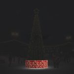 Дизайн оформлен в виде декоративных лент и бантов, словно вся площадка упакована в подарок. При дневном освещении ограждение выглядит как элемент городского дизайна, а вечером отражает свет гирлянд и иллюминации, создавая мягкое золотистое сияние. Такое оформление мгновенно притягивает внимание и создаёт атмосферу ожидания чуда.