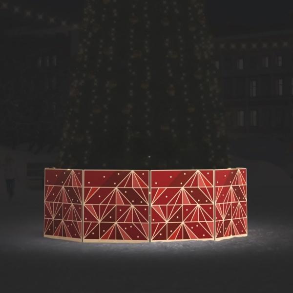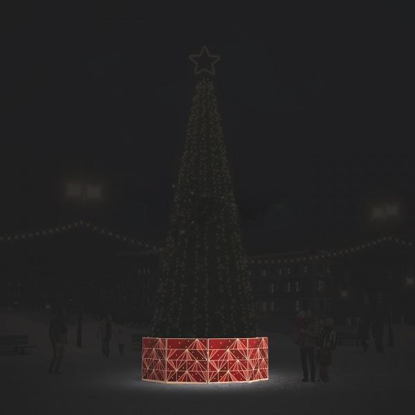 Ограждение для ёлки «Новогодний подарок» от JOYLED превращает праздничную композицию в завершённый арт-объект. Лёгкий алюминиевый каркас скрывает основание ёлки и технические соединения, делая пространство вокруг аккуратным и безопасным.