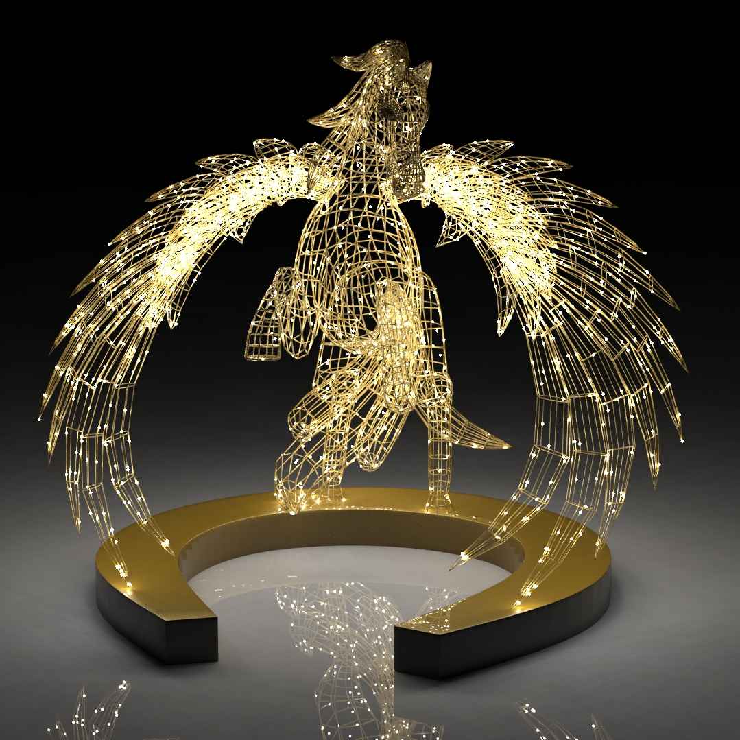 Мифический образ крылатого коня символизирует вдохновение, лёгкость и победу. Установленный на подиум в форме подковы — символа удачи и процветания — Пегас мгновенно превращает площадь, парк или входную зону в сказочное пространство, наполненное светом и атмосферой праздника.