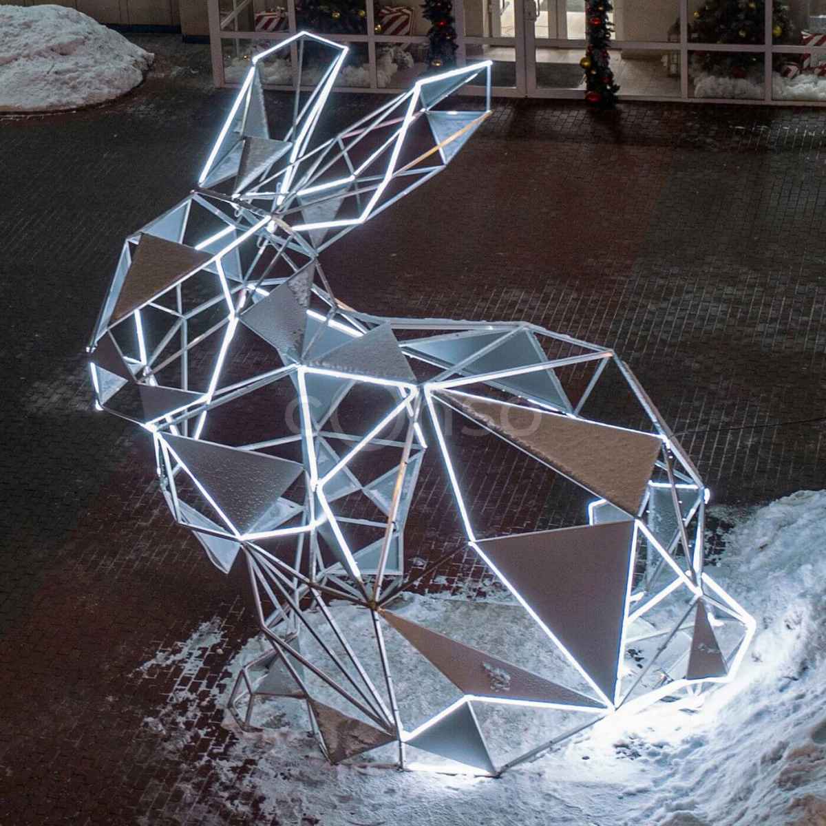 Полигональная световая фигура «Серебристый кролик», 4,92×4,62×3,70 м, IP65, холодный свет
