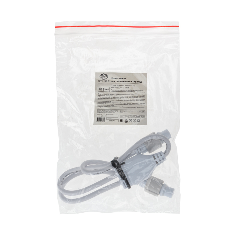 Разветвитель-Y формата «1 вход — 2 выхода» — это удобное решение для тех, кому нужно подключить сразу две гирлянды от одного источника питания. Он помогает сократить количество соединителей, сделать монтаж аккуратнее и обеспечить стабильную работу световой системы. Такой аксессуар незаменим в проектах, где гирлянды идут в разные стороны: по фасаду, вдоль колонн, по дереву или декоративной конструкции.