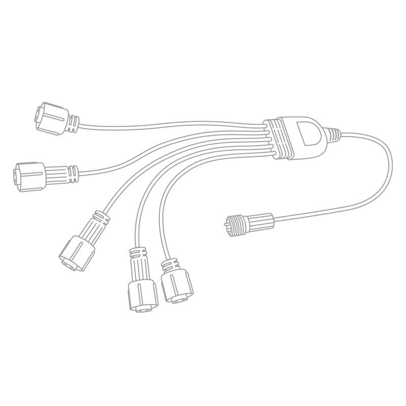 Разветвитель-Y предназначен для тех случаев, когда нужно подключить несколько уличных гирлянд от одного источника питания, сохранив аккуратность монтажа и стабильность работы. Формат «1 вход — 5 выходов» позволяет объединить до пяти световых линий, не создавая лишних переходников и сложных конструкций.