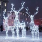 Динамичные позы животных передают ощущение движения и жизни. Каждый олень словно готов в любой момент сорваться с места и понести сани Деда Мороза к детям со всего мира. Холодный белый свет подчёркивает грациозные линии фигур и создаёт атмосферу морозной свежести.