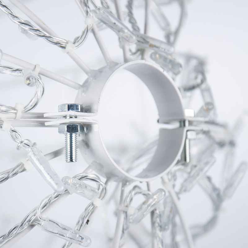 Внутри шара — 300 светодиодов с эффектом мерцания (Flash). Это создаёт лёгкую динамику без агрессивного мигания. Свечение тёплое, мягкое, уютное — идеальное для оформления жилых домов, парков, пешеходных зон, входных групп и витрин. Мощность всего 23 Вт — при впечатляющем визуальном эффекте это решение остаётся максимально энергоэффективным.