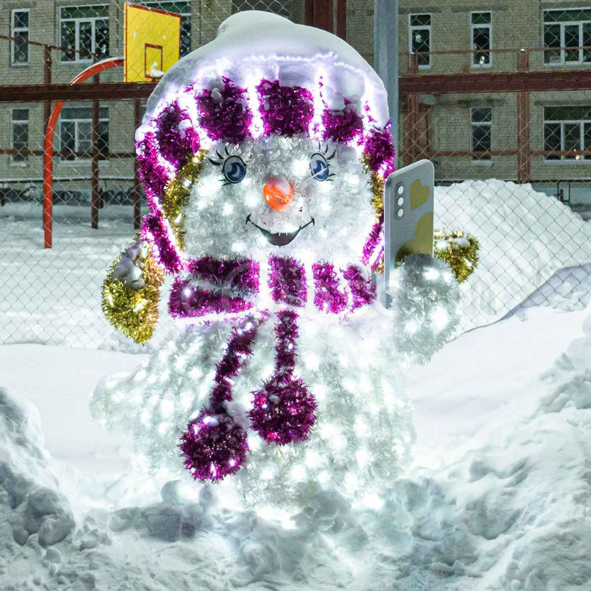 Новогодний снеговик «Снежка» — тёплая улыбка зимнего города