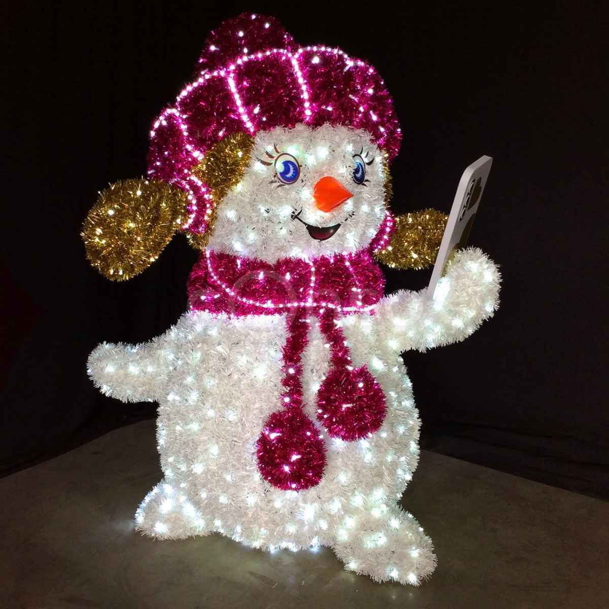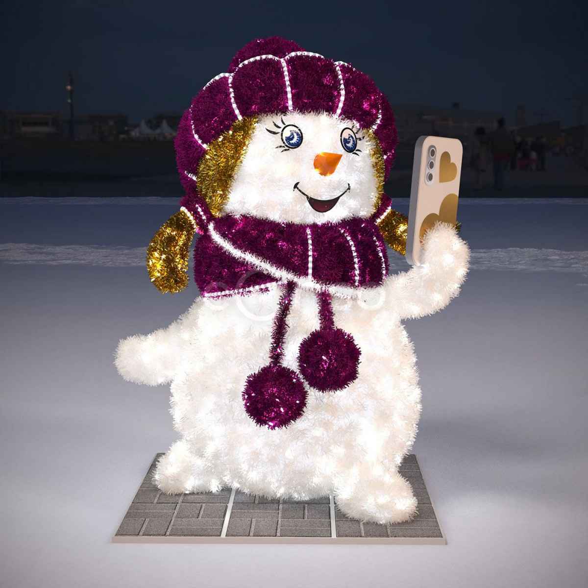 Новогодняя световая фигура «Снежка» — яркий мишурный снеговик высотой 2 метра. Подходит для уличной установки: IP65, холодное свечение, алюминиевый каркас. В комплект входят пригрузочные плиты. Идеальна для фотозон, входных групп и украшения ТЦ, парков и площадей.