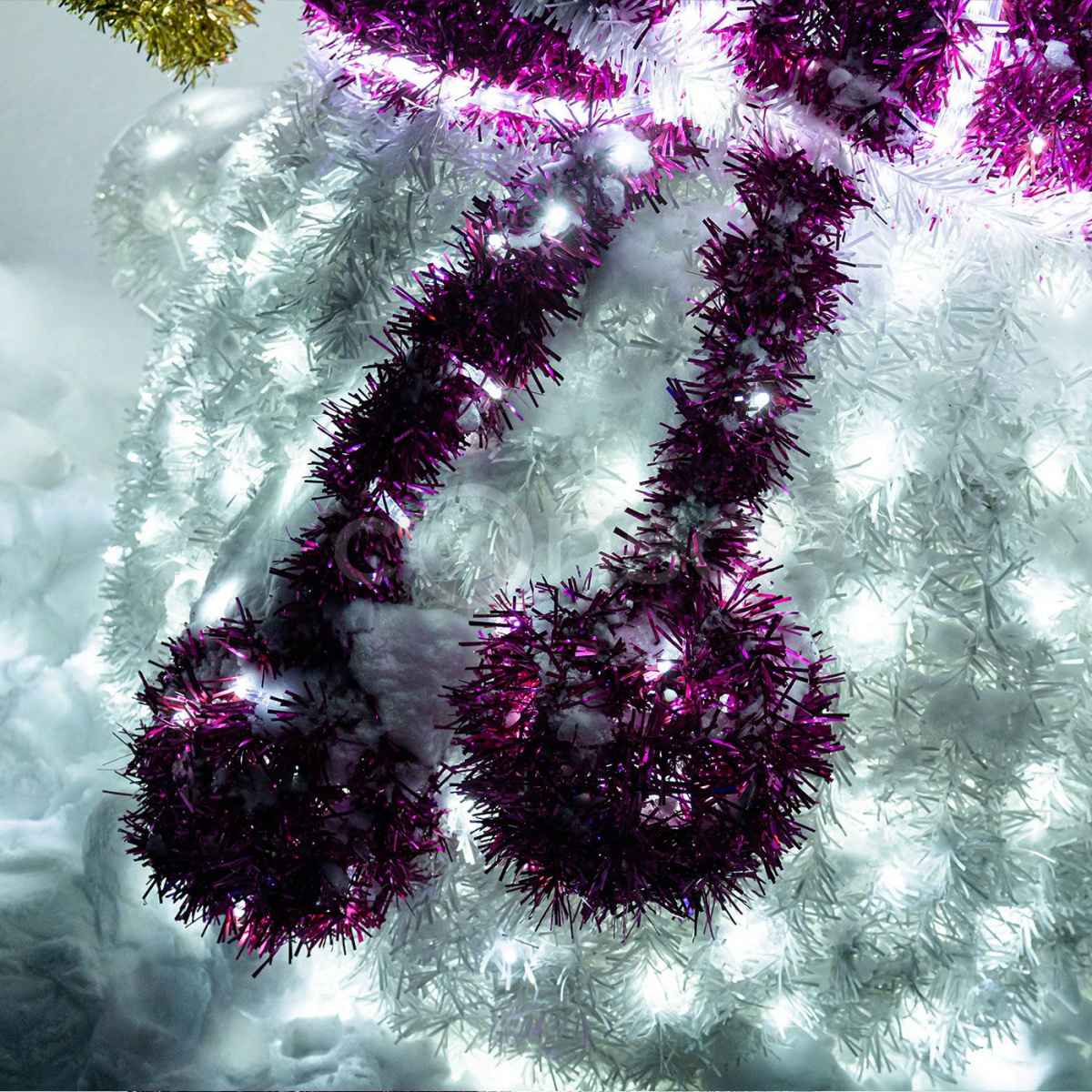 Каркас изготовлен из алюминия с порошковым покрытием. Внутри — надёжная электрика на 24 В. Степень пылевлагозащиты IP65 позволяет использовать изделие на улице круглый год. Свет — холодный белый, мощный, но комфортный для восприятия. Мишура равномерно распределяет свет и даёт выразительную фактуру даже днём.