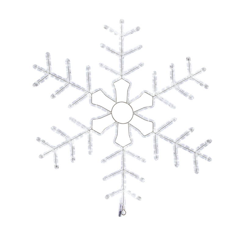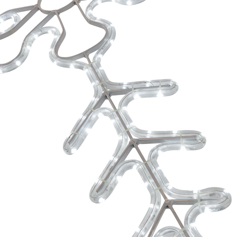 Светодиодная фигура «Снежинка» 95×95 см из дюралайта с белым мерцающим свечением. Подходит для уличного и интерьерного оформления. Надёжная конструкция, IP65, устойчивость к морозам до –25 °C. В комплекте — провод для подключения. Идеальное решение для украшения фасадов, опор, входных групп. Производство, поставка и монтаж — JOYLED.