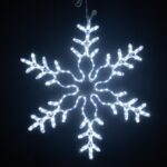 Уличная световая фигура-снежинка диаметром 80 см. Изготовлена из прочного алюминиевого каркаса с применением светодиодного дюралайта. Белое статичное свечение подчёркивает праздничную атмосферу, защита IP44 позволяет устанавливать на улицу. Подходит для оформления фасадов, фонарей и городских пространств.
