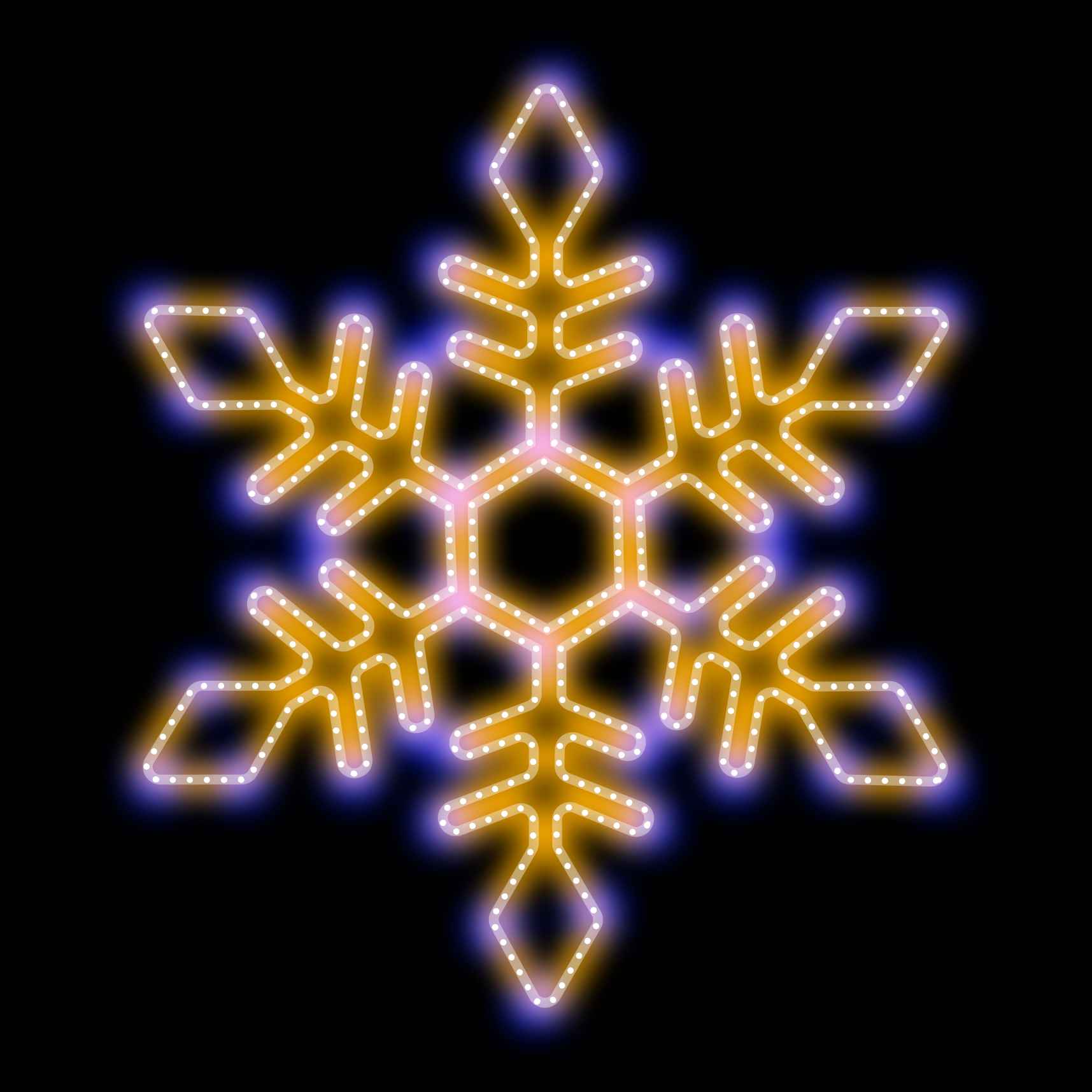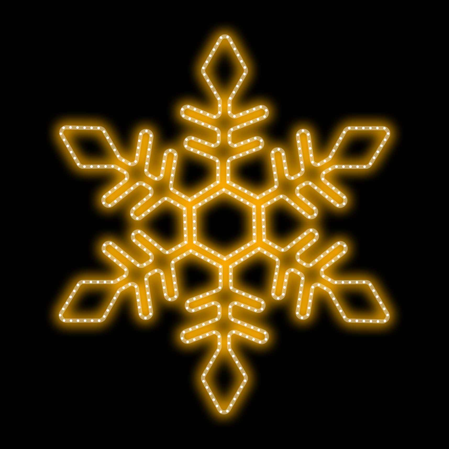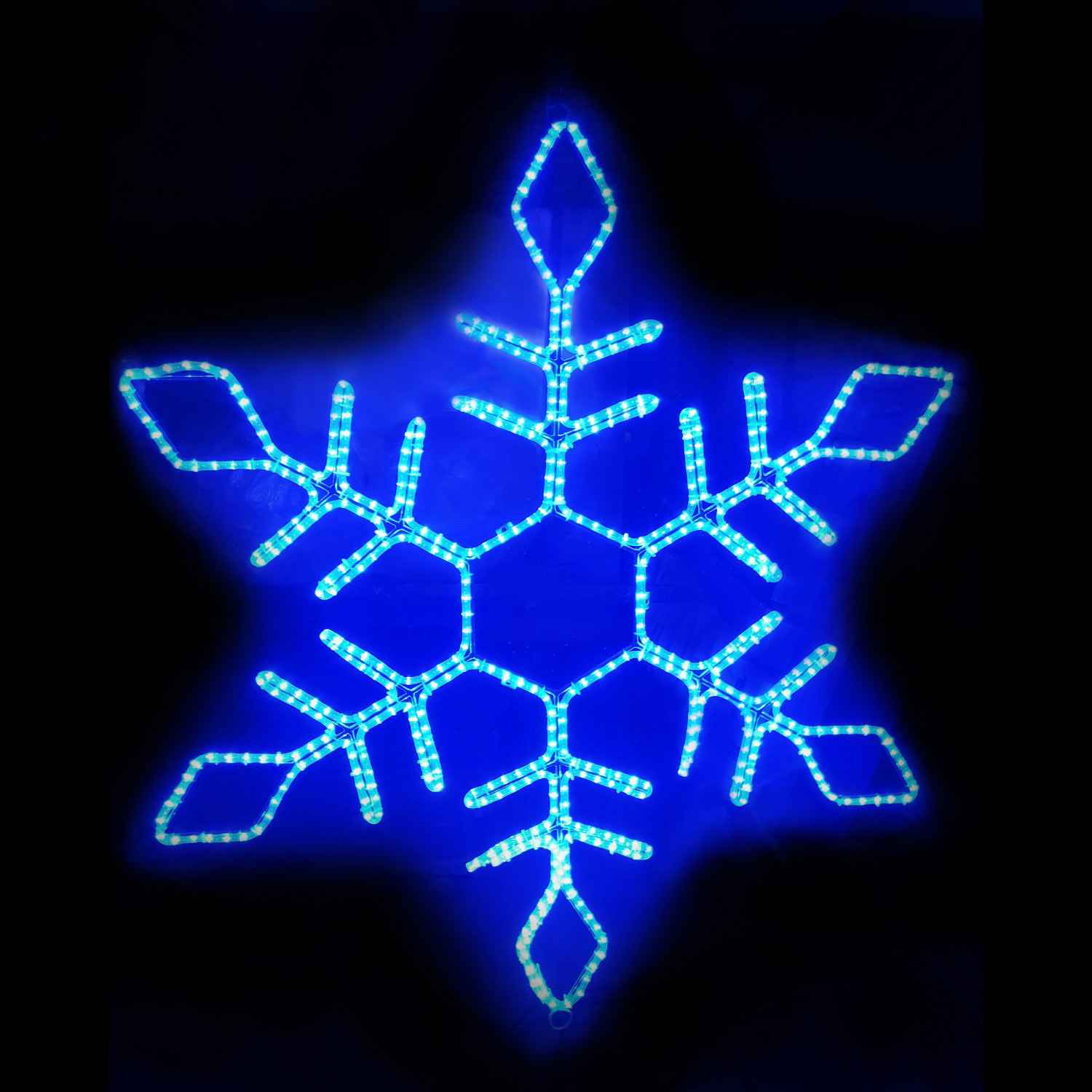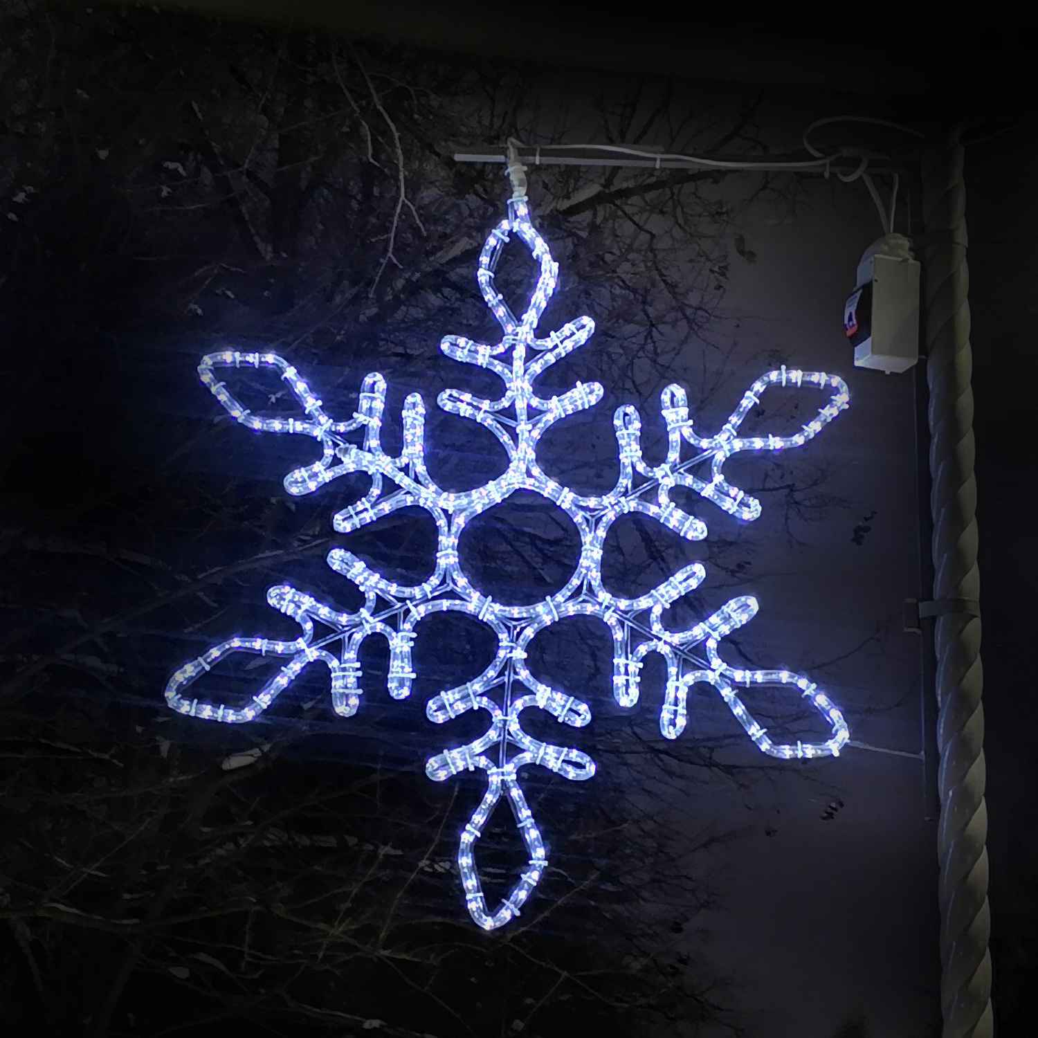 Каркас снежинки выполнен из стали с антикоррозийной обработкой. Это гарантирует устойчивость к снегу, дождю, ветру и механическим нагрузкам. Фигура разработана специально для уличного применения в условиях российской зимы и рассчитана на температурный диапазон от –50 до +40 °C.