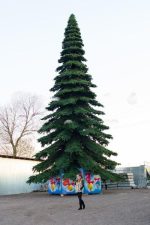 Ель гармонично вписывается в архитектуру площадей, парков, входных групп торговых центров, деловых кварталов и фестивальных пространств. Она формирует сильный визуальный акцент и подчёркивает атмосферу зимнего праздника, не перегружая композицию декоративными элементами.