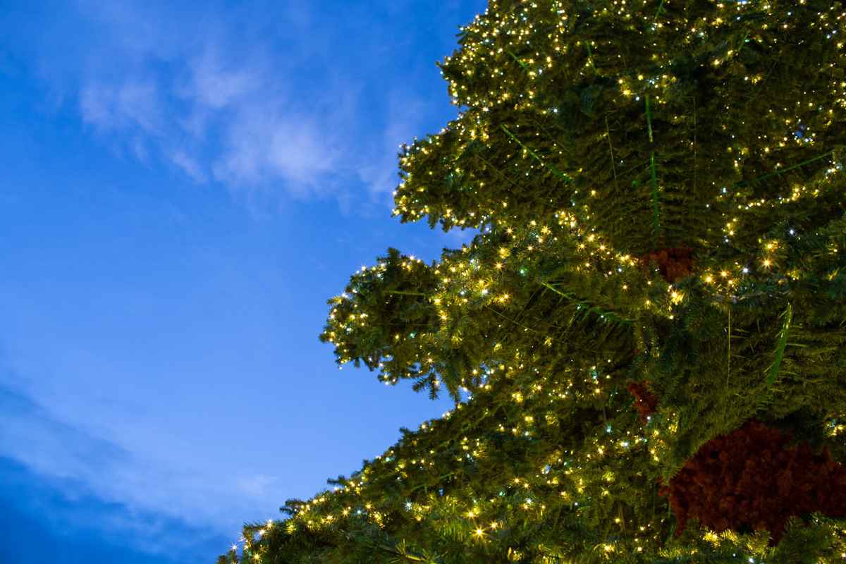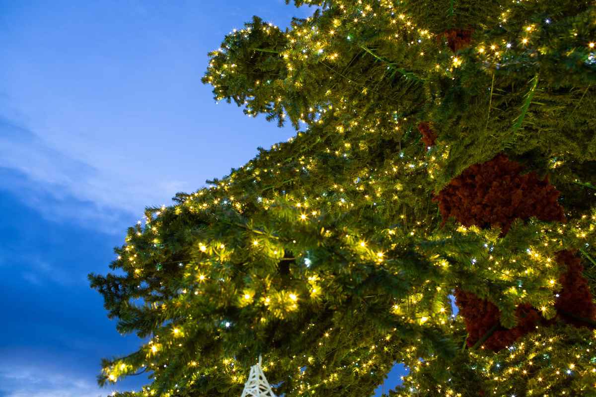 Такая подсветка усиливает высоту ели, подчёркивает форму и делает её видимой издалека, даже на фоне ярко освещённой городской среды.