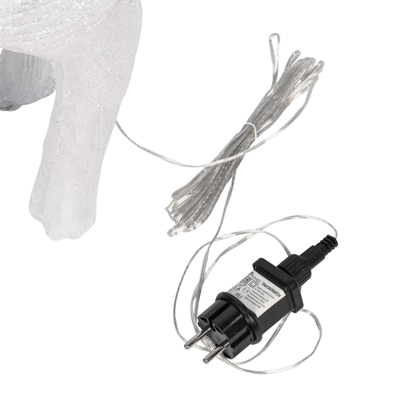 Каркас фигуры изготовлен из прочного акрила, который отличается лёгкостью и долговечностью. Материал устойчив к ультрафиолету, осадкам, низким температурам и физическим воздействиям. За счёт прозрачной структуры акрила и равномерного распределения 380 светодиодов, фигура светится ровно и красиво, создавая ощущение объёма.