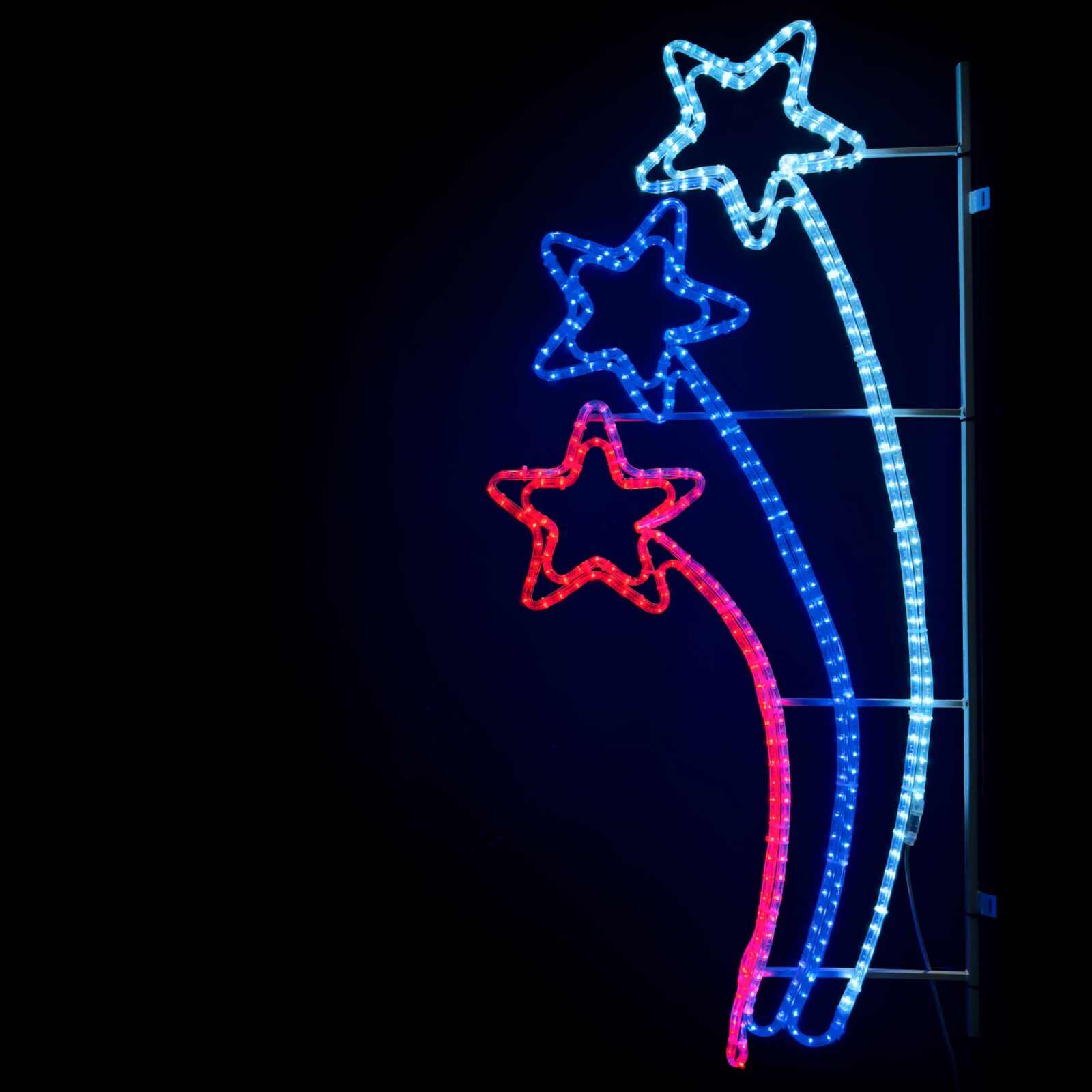 Световая консоль «Три кометы» от JOYLED — это выразительное решение для праздничного и патриотического оформления улиц, площадей, фасадов и парков. Фигура выполнена в виде трёх динамичных светящихся комет с хвостами, создающих ощущение движения и праздничного заряда. Благодаря универсальному размеру 70×150 см консоль подходит для установки на столбы, фасады зданий, козырьки и арочные конструкции.