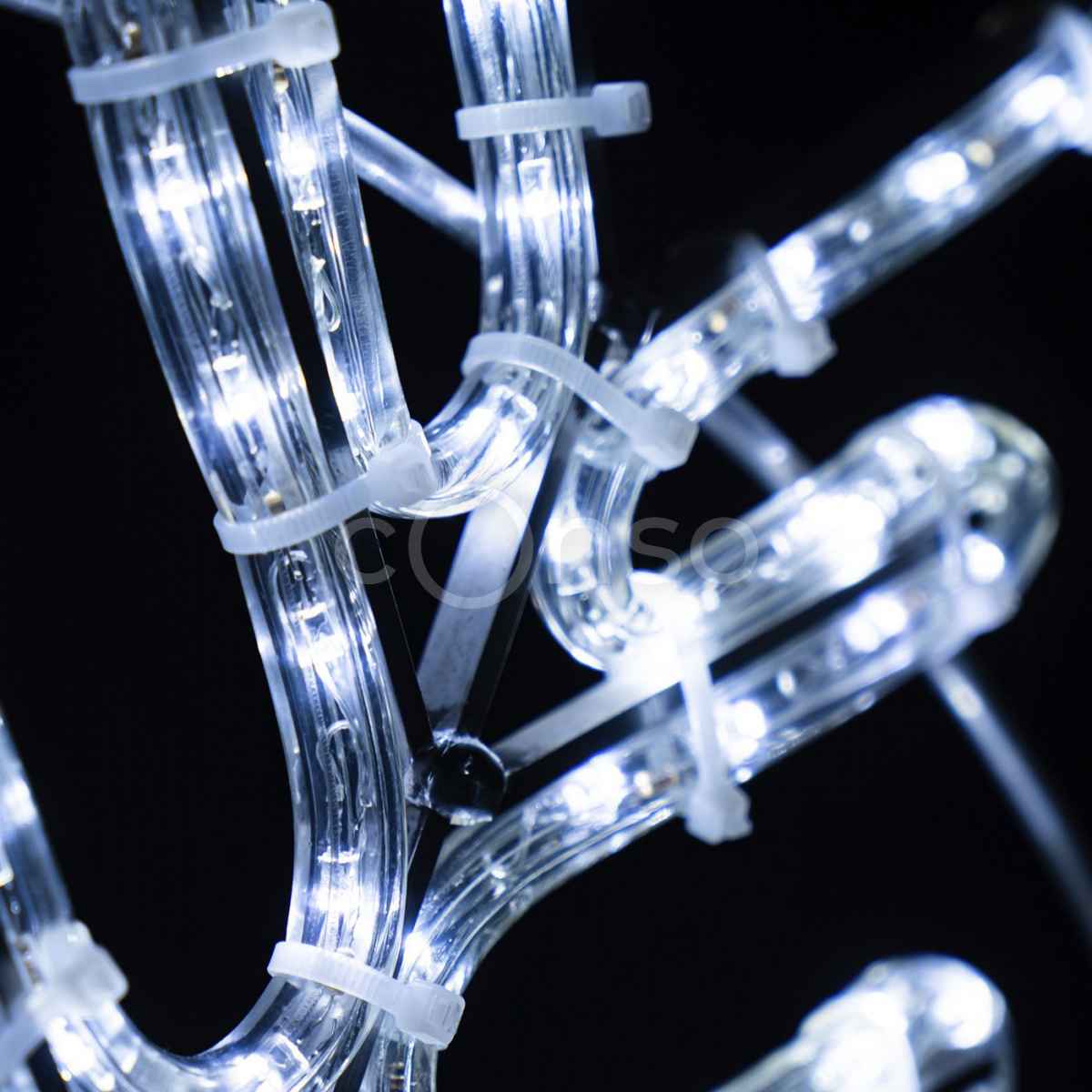 Фигура оснащена светодиодами с равномерным и ярким свечением. Тип свечения — статичный (без мерцания), что снижает нагрузку на глаза и создаёт стабильную световую картинку. Подключение — стандартное от сети 220 В, всё необходимое входит в комплект.
