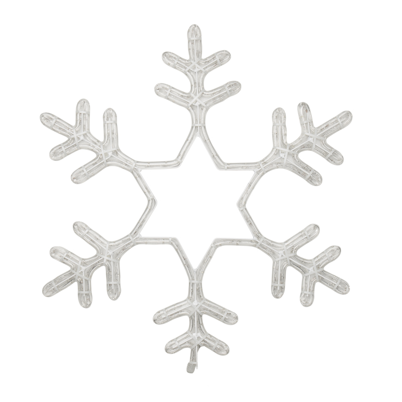 Световая снежинка из дюралайта 55×55 см — удачный выбор для оформления фасадов, окон, входных зон и общественных пространств в зимний период. Эта модель сочетает минимализм формы с выразительным эффектом: благодаря белому мерцающему свечению фигура заметна как днём, так и вечером. Компактный размер, высокая степень защиты IP65 и простота монтажа делают изделие универсальным для использования на улице и в полузакрытых помещениях.