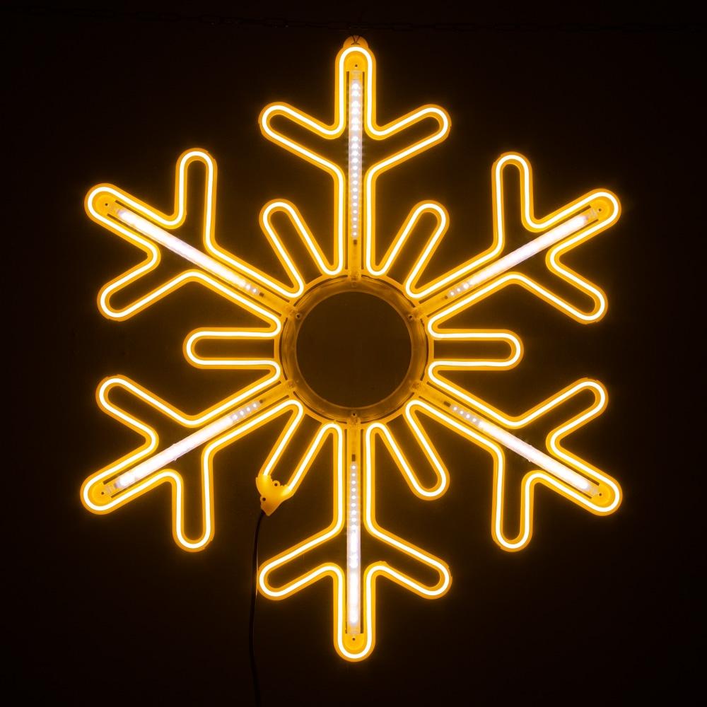 Светодиодная снежинка из неона 7х15мм, 80 см, Тепло-Белый + Белые лучи, IP44