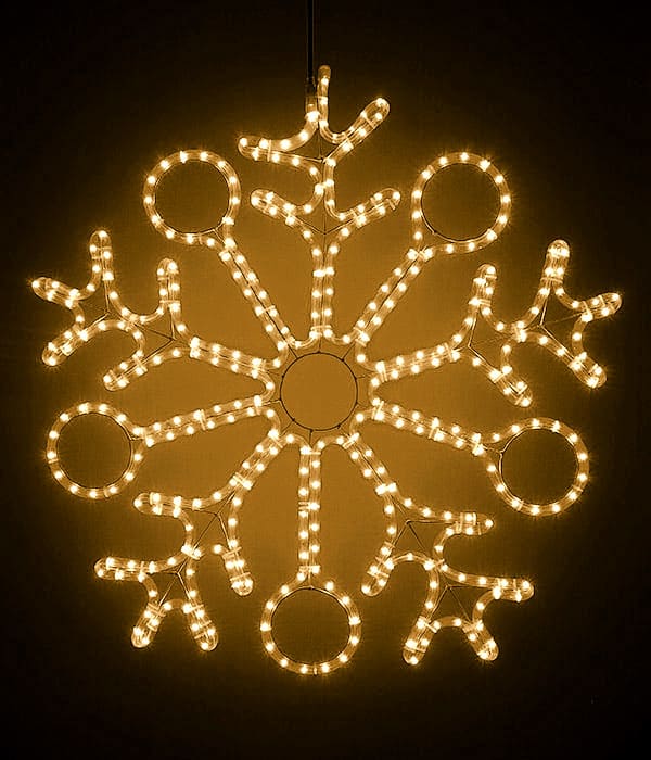 Светодиодная Снежинка «Пять Колец» Ø0,9м Тепло-Белая, Дюралайт на Металлическом Каркасе, IP54